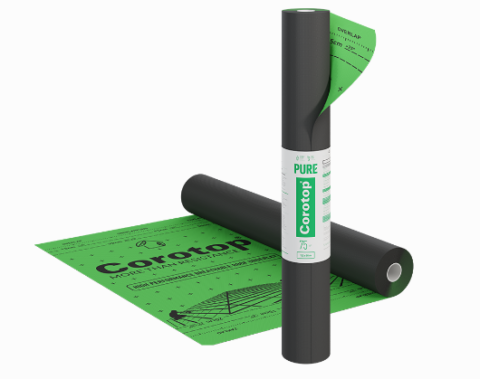 Zelená farba strešnej membrány Corotop PURE PLUS  nie je náhodná. Táto veľmi pevná, hrubá fólia má zhodne s medzinárodnými normami zníženú uhlíkovú stopu.  Je zabelená v recyklovaných materiáloch, v súlade s princípom „Less waste – Menej odpadu“, ktorá obmedzuje spotrebu prírodných zdrojov. Vďaka svojej vysokej paropriepustnosti (Sd = 0,02 m) a vodotesnosti (W1) Corotop PURE PLUS zaručuje suchú a nepriepustnú strechu, vyrobenú s ohľadom na životné prostredie. Odporúčané použitie na plné aj neplné debnenie.